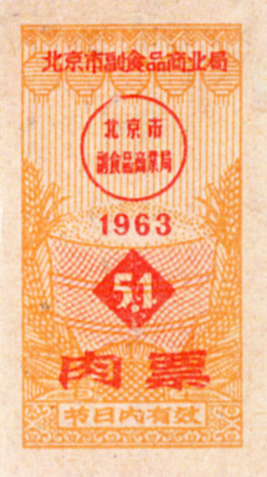 ● 1963年7月,17级以上的干部、职工补助的肉、蛋、食糖也改为自行购买、只发一种补助豆票、一律补助三斤(含居民户口补助的半斤)。