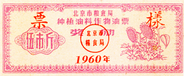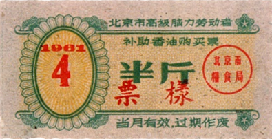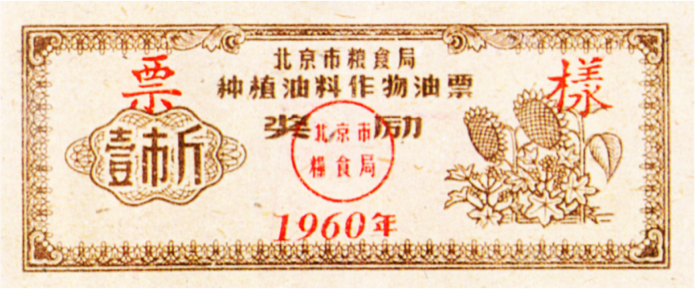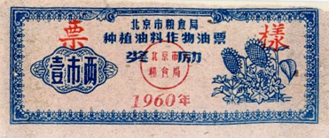 ● 1954年3月,北京市随全国开始了食油计划供应,取消了自由市场。居民需持“食油购买证”(市商业局制发的本)购买食油,限量供应。