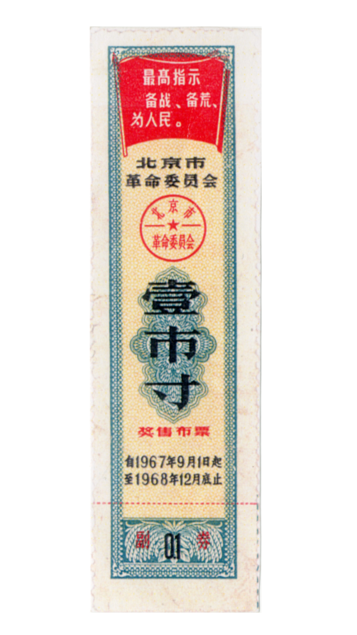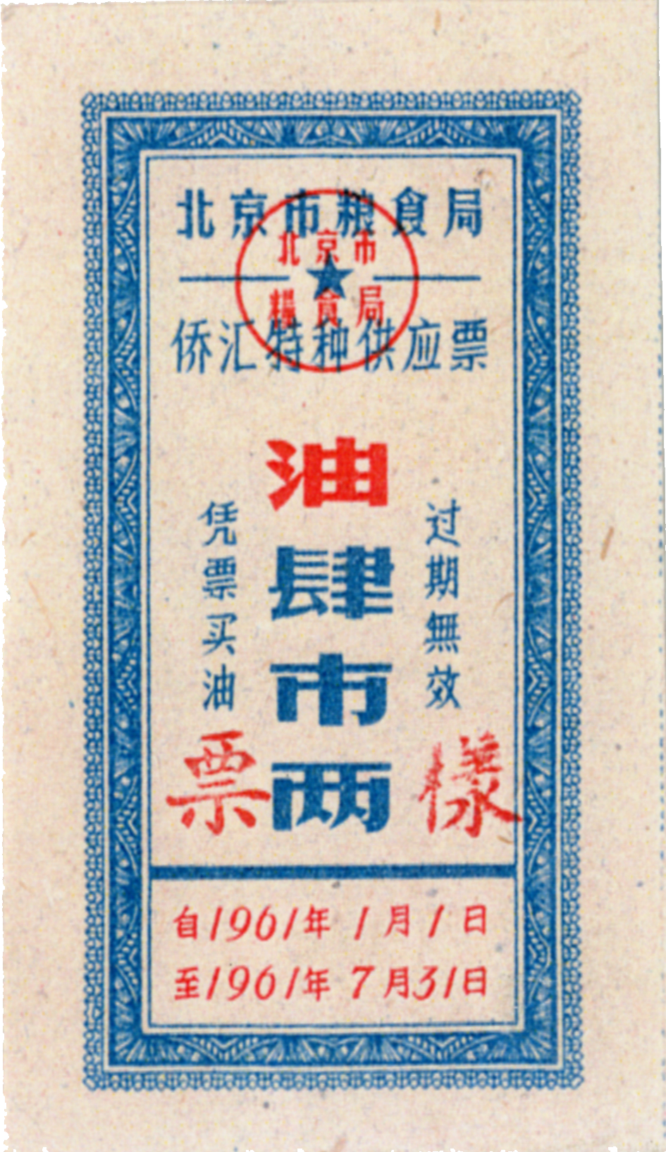 ● 1968年1月,北京市粮、面票改为按月发放,全年有效。