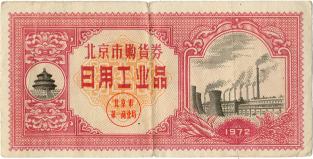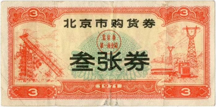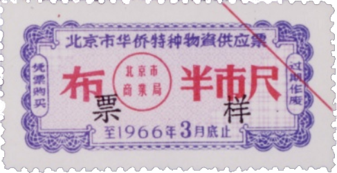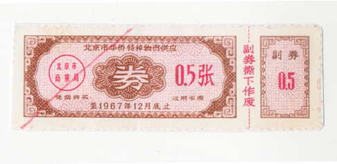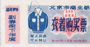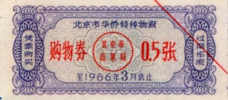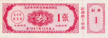 ● 1966年1月13日,规定:城市购货券和农村购货券可通用;对按月发固定工资的半工半读中学生,每人每季可发一张购货券;对亦工亦农人员和个集团单位冬季临时锅炉工,其发券标准可视同临时工办理,但其工资部份归己者(另一部分交生产队),则按归己部份计算发券数量。