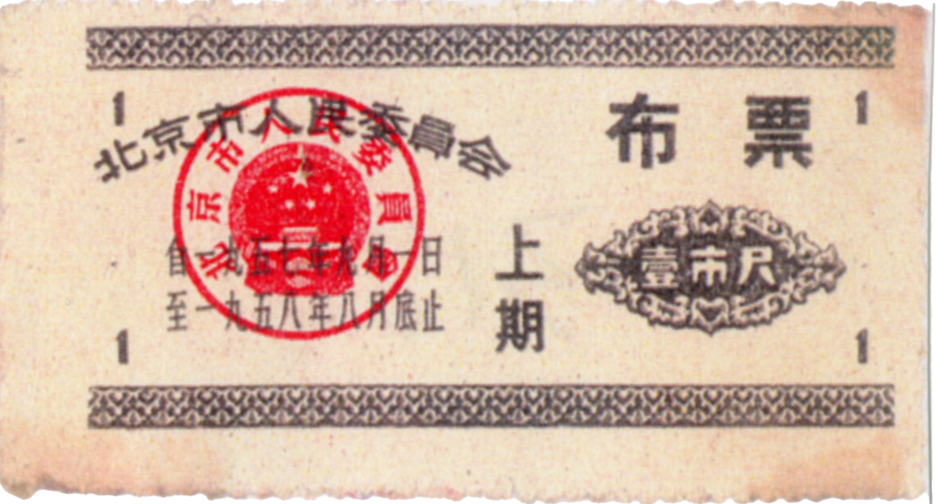 ● 1954年9月15日,各省市正式发放布票即“棉布购买票”、棉絮票,按人限量供应,在本地区使用。