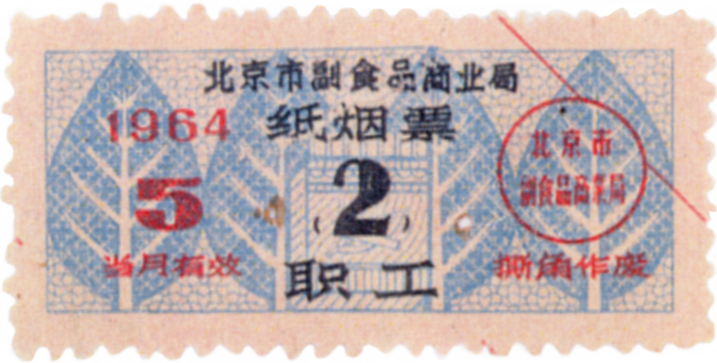 ● 1977年2月12日,对卷烟实行凭证限量供用,每人每次最多不超过4盒(甲、乙级烟);无证人员只能供丙、丁级烟2盒;由市糖业烟酒公司对中央、市属饭店、宾馆、招待所等单位直接供应;区县属社会旅店,每月按实住人数的70%,每人每天供应1盒烟。