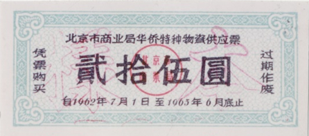● 1960年,开始印发华侨特种物资供应票或侨汇物质(商品)供应证